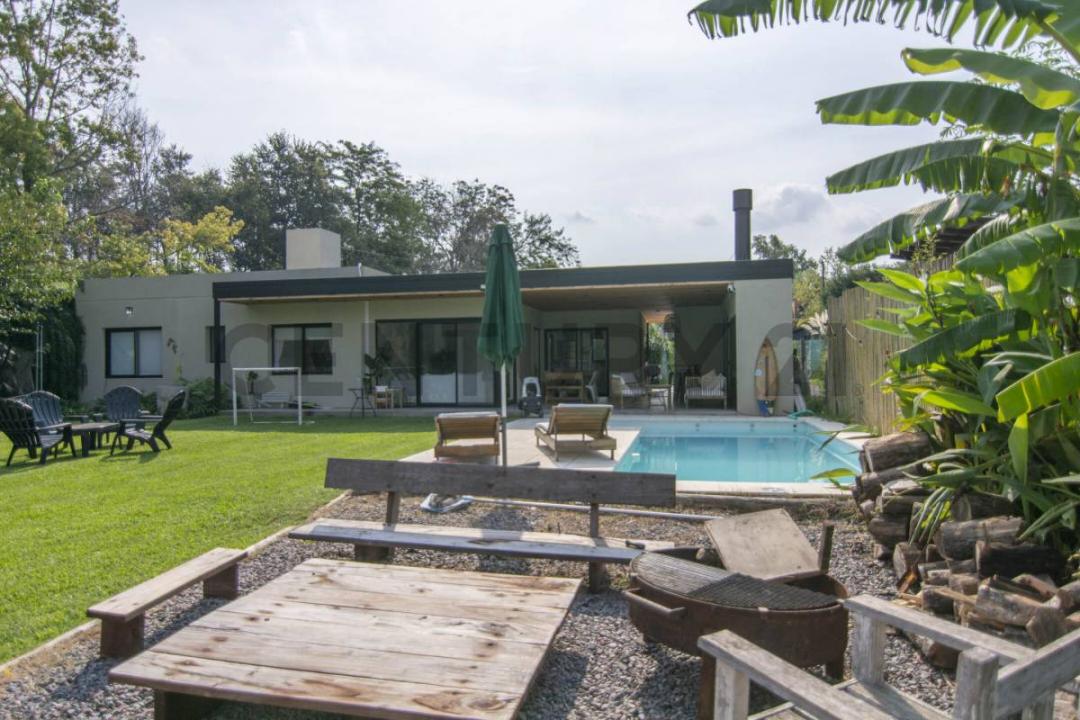 El exterior se presenta como una verdadera extensión del interior: un jardín amplio, parquizado y soleado, con pileta, rodeada de deck y solárium, ideal para disfrutar del aire libre.