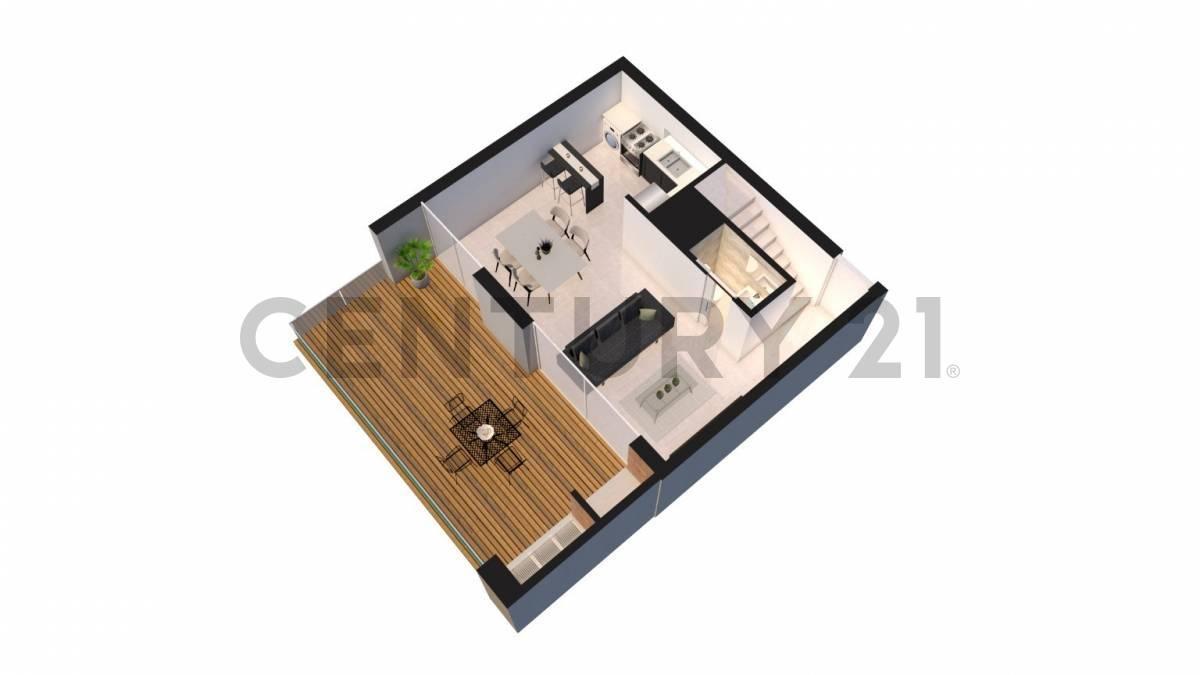 Tipología 3: Ubicado en primer piso, se ingresa a la unidad por su living comedor con cocina semi-integrada, terraza con parrilla, toilette. Subiendo hacia la planta alta, nos encontramos con un bano completo y 3 dormitorios, todos con placard de piso a techo.
