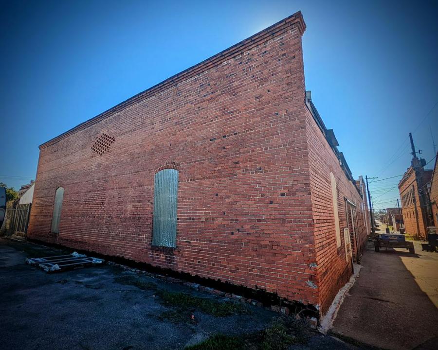 Two Historic Downtown Lots Bring Lots of Possibilities. This large open brick building once served as Cotton Warehouse No. 1 and later as a lumber warehouse (A14 008). It has since been converted into a multi-use space, hosting antique auctions, social gatherings, and music events. The interior has both men and women's restrooms with divided stalls and sinks. A large bar equipped with an array of food storage and preparation appliances is also featured. Three large bays allow access to alleyways, a large parking lot, a covered rusticated veranda, and fenced urban garden (A14 009). The garden is accented with raised planting beds made from tractor tires, There are an array of potted planting areas, trees, and even an active coy pond. This space has been recently rewired and operates on an expandable 200 amp system. Skylights are operable with no leaks. Plenty of room for Georgia's next craft brewery and beer garden or eclectic restaurant. This property boasts ample parking.